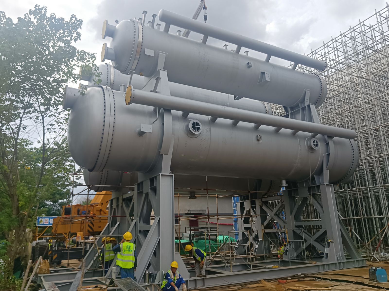 我公司為普泛能源定制的萬千瓦級低品位熱源制冷制冰設(shè)備,現(xiàn)場實(shí)現(xiàn)一次吊裝成功。該設(shè)備單套總噸位達(dá)500噸,兩套設(shè)備均一次性精準(zhǔn)就位。其可廣泛應(yīng)用于乙二醇、合成氨、綠氨、半導(dǎo)體、電廠等多個(gè)領(lǐng)域。